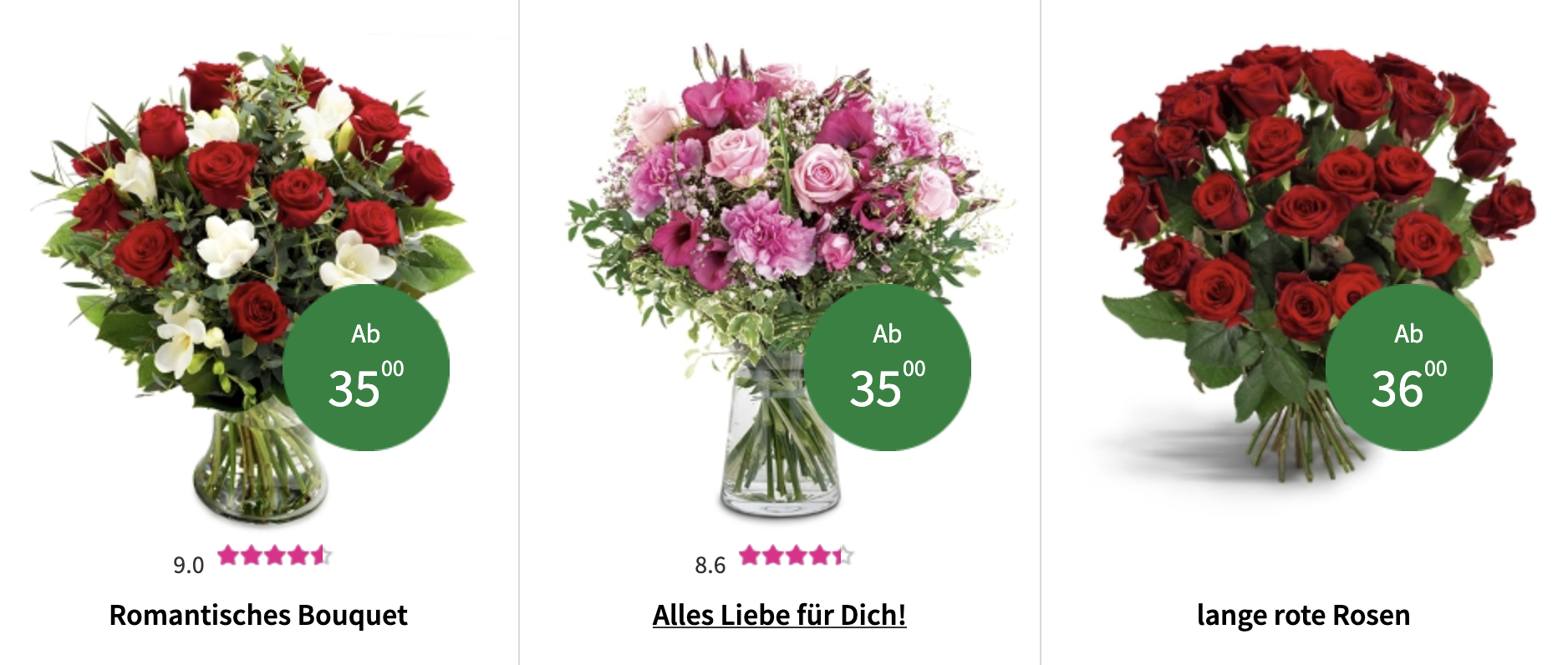 Überraschen Sie Ihre Liebsten jetzt mit unseren wunderschönen Blumen zum Valentinstag. Wir bieten eine riesengroße Auswahl an Blumen, sodass sie ganz bestimmt die richtigen für Ihren Valentin finden werden. Jetzt online Blumen bestellen und von Ihrem vertrauenswürdigen Floristen liefern lassen!