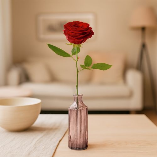 For centuries, the red rose has been a symbol of romance and passion. Combined with the modern vase, it creates a harmonious ensemble that can be given as a gift or decorated immediately. Whether for Valentine's Day, a birthday, an anniversary, or simply for no occasion—this rose is always a beautiful gesture. Complement your gift with a personalized card or fine chocolate.