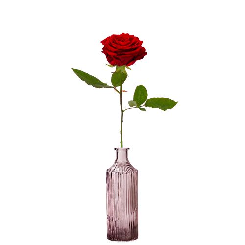 Surprise a special someone with a Red Naomi rose with a free pink glass vase. This tasteful gift combines elegance, love and warmth. Ideal for saying "I love you", "I'm thinking of you", or simply to give joy.