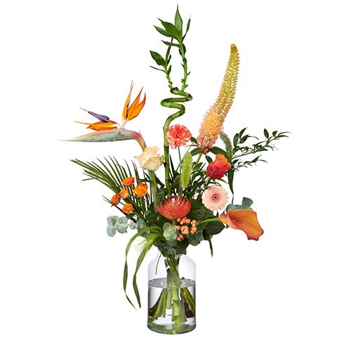 Unsere Sophie wird Sie wirklich begeistern! Wenn Sie einen umwerfenden Eindruck machen wollen, ist dieser elegante Strauß das perfekte Geschenk. Mit exotischen und farbenfrohen Blumen wie Strelitzia, Eremuris und Calla Lily im Pflückstil wird dieser Strauß den Tag für alle aufhellen.
