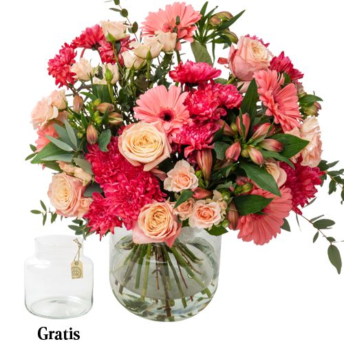 Mit Lina machen Sie Eindruck. Ein wunderschönes, pinkfarbenes Bouquet macht in jedem Zimmer Eindruck. Lina ist persönlich an einen unserer professionellen Ordner gebunden und mit Rosen, Rosensträußen, Chrysanthemen und Gerbera versehen. Wenn Sie sie wissen lassen möchten, dass Sie an jemanden denken, senden Sie den Blumenstrauß Lina. Jetzt zeitweilig inkl. Vase im Wert von 10 €