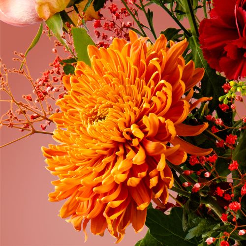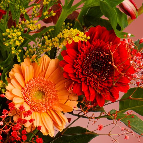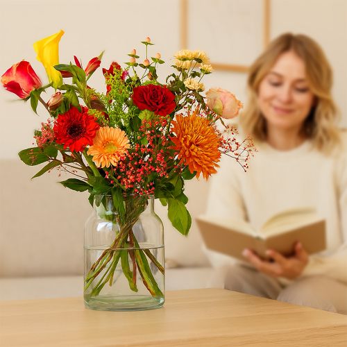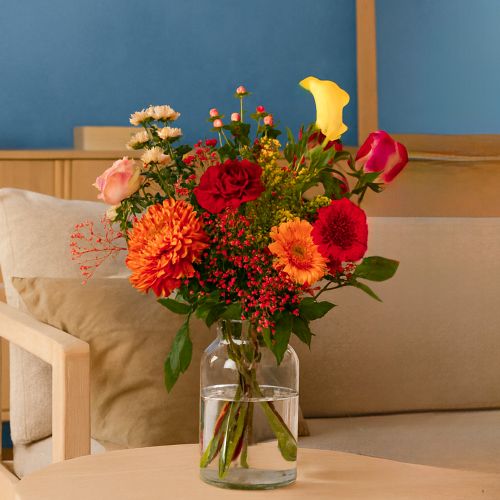 Dieses Bouquet wird von ausgebildeten Floristen professionell in unserer eigenen Blumenbinderei gefertigt. Wir binden die Blumensträuße mit der fotografierten Anzahl von Blumen. Bitte beachten Sie: Blumen sind ein Naturprodukt. Unsere „Seasonal Bouquets“ kommen in den gewählten Farben mit Blumen je nach saisonaler Verfügbarkeit. Jede Blume ist einzigartig. Ihr Aussehen kann in Farbe und Form von der auf dem Foto abweichen. Die Vase auf dem Foto ist nicht im Preis enthalten, kann aber zur Bestellung dazu gebucht werden.